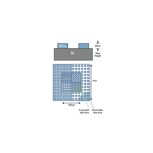 The AFM calibration standard structures are all fabricated on a Si chip which is mounted on a 12mm stainless steel AFM disc with electrically conductive epoxy resin.