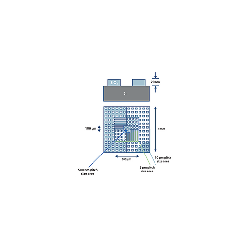 The CS calibration standard with 20nm Z height also enables X- Y-axis calibration at a smaller scanner size in the µm range.