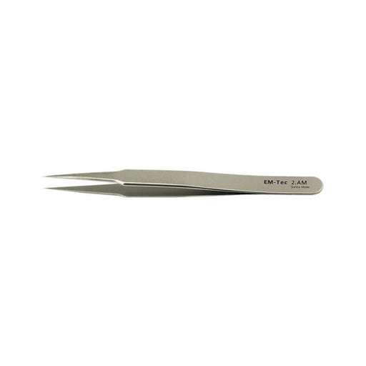 EM-Tec 2.AM high precision tweezers, style 2, flat, sharp fine tips, anti-magnetic stainless steel