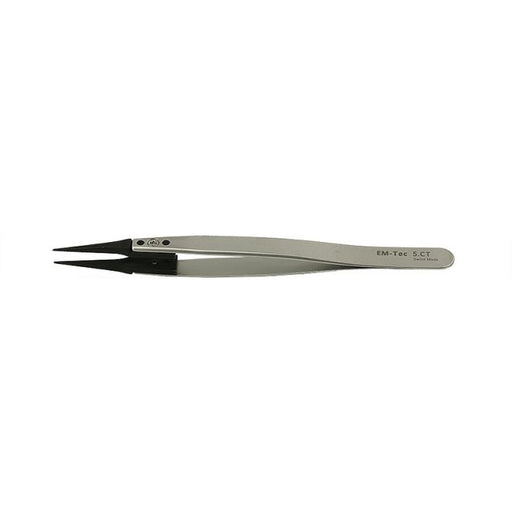 EM-Tec 5.CT ESD safe carbon fiber replaceable tip tweezers, sharp fine tips