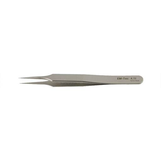 EM-Tec 4.TI high precision tweezers, style 4, very fine sharp tips, titanium