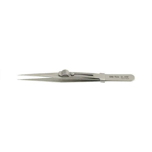 EM-Tec 1.AM high precision locking tweezers, style 1, strong fine tips, anti-magnetic stainless steel