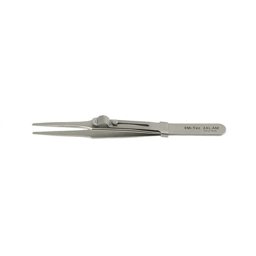 EM-Tec 2A.AM high precision locking tweezers, style 2A, flat accurate round tips, anti-magnetic stainless steel
