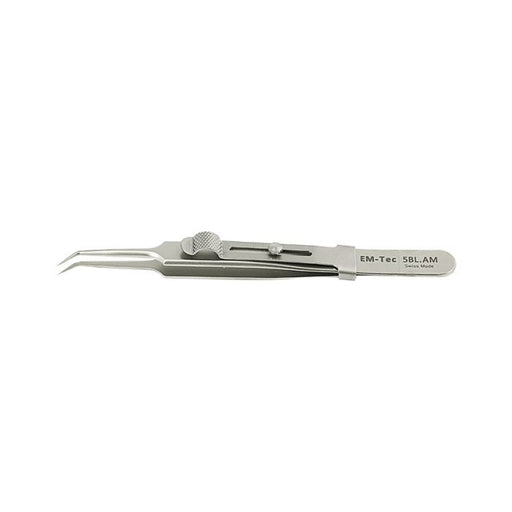 EM-Tec 5B.AM high precision locking tweezers, style 5B, extra fine bent tips, anti-magnetic stainless steel