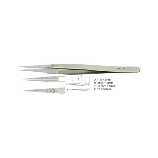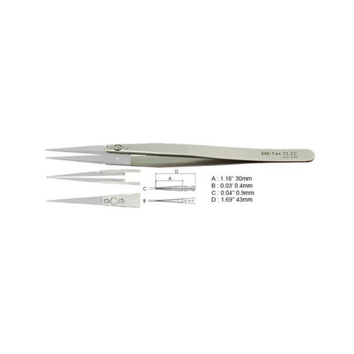 EM-Tec 71.ZC ceramic replaceable tips tweezers, sharp pointed tips