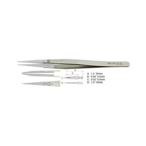 EM-Tec 73.ZC ceramic replaceable tips tweezers, fine pointed tips